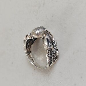 Make a bold statement with this intricately detailed octopus ring, crafted in solid 925 sterling silver. This eye-catching design wraps elegantly around the finger, creating a unique and artistic look. Perfect for ocean lovers, gothic style fans, or anyone who appreciates standout jewelry. Marked 925 on the inside band. Size 7. Preowned in great condition.