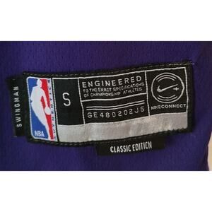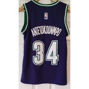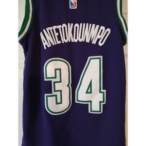 The product is a men's Nike Swingman Basketball Jersey featuring Giannis Antetokounmpo of the Milwaukee Bucks, in size small and purple color. It is officially licensed by the National Basketball Association (NBA) and manufactured by Nike. The jersey is designed for basketball fans looking to support their favorite team and player during the regular season. Made for men, this jersey is a must-have for fans of Giannis Antetokounmpo and the Milwaukee Bucks.