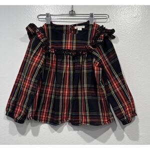 Crewcuts Tartan Plaid Ruffle Apron Top Girls Size Small Holiday Ruffle Trim