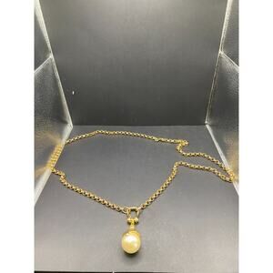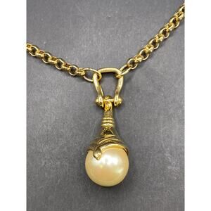 Vintage Faux White Pearl Chunky Pendant Gold Tone Cable Chain Necklace