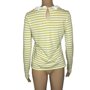 Women's 2 Boden Kathleen Lace Collar Green Stripe Crewneck Long Sleeve Shirt