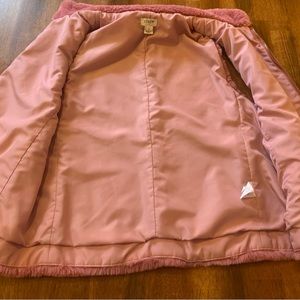 J. Crew women’s faux fur zip up vest. Pink/guava berry. Excellent condition. Front pockets. Blanket soft. Smoke free home.