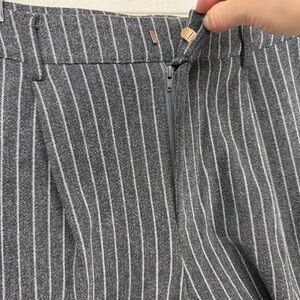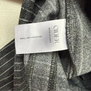 Elegant gray trousers with subtle pinstripes by Cider. The texture is a fuzzy wool-like fabric. Zipper fly with hook and loop closure. Size XL.