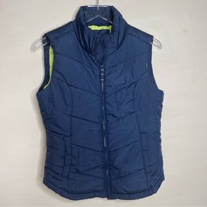 Navy vest. Zipper closure. Lime Green lining, women’s size medium. EUC