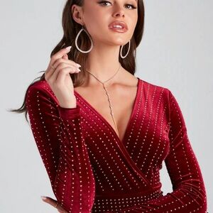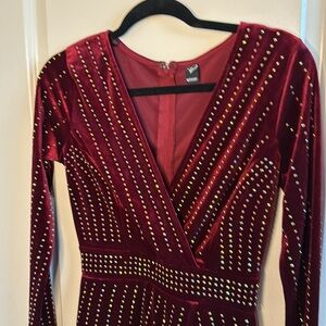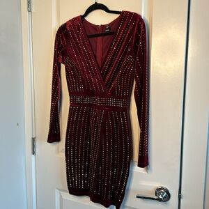 Windsor maroon velvet dress with sequins.
