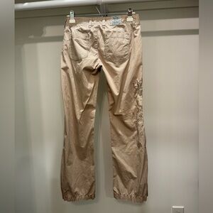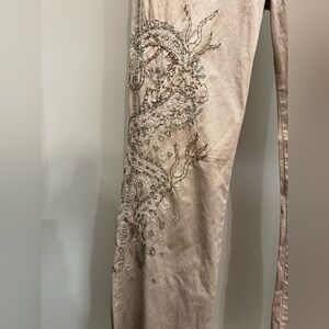 Chic tan flare pants with intricate embroidery. Perfect for versatile styling. Very cool and rare. Used and good condition.