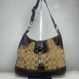 Canvas adjustable straps, and top canvas/leather strap, gold tone engraved hardware, large front pocket