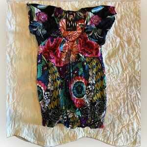 Elegant button down shirt with pink, yellow, and tan stripes. Wrinkle resistant fabric. Great for any occasion. Size 14 in excellent pre-owned condition.