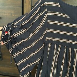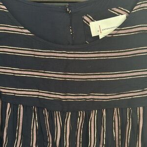 Navy mauve and metallic stripe blouse. Size small from Anthropologie. Tie sleeves.