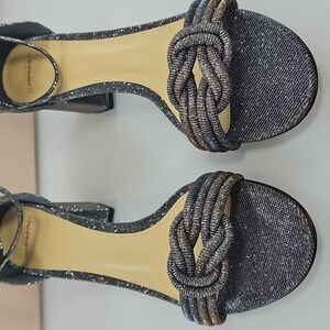 $625 Alexandre Birman's Vicky 60 sandals are crafted of eye-catching metallic fabric. This block-heel style features a knotted accent on the toe strap. A sparkling finish and our signature Vicky knot defines this evening-ready silhouette.