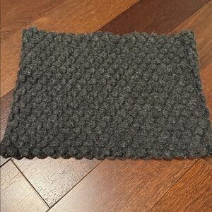 Excellent condition, worn a few times. Super warm soft Italian yarn. Marled gray. Although the tag doesn’t say, I’m sure this is a wool and possibly alpaca blend.