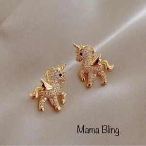 Winged Unicorn Pegasus 18k Gold Plated Crystal Stud Earrings NWT