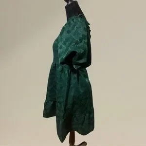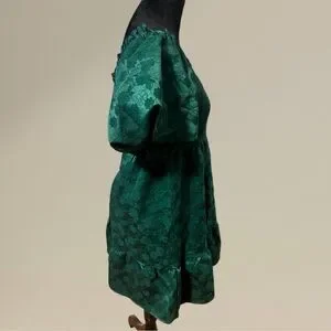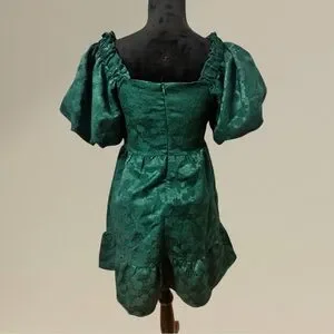 This elegant green mini dress features a stylish square neckline and puff sleeves, perfect for any occasion. The rich green color adds a touch of sophistication to your wardrobe.