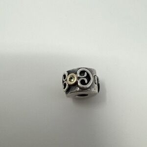 Retired Pandora ALE 14K Bezel Peridot Double Heart Scroll Clip – 926