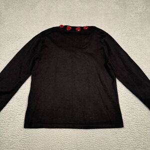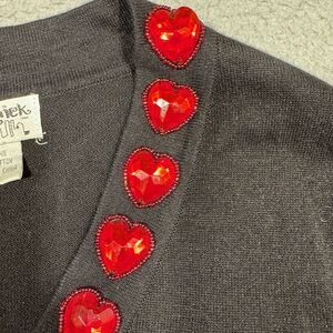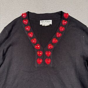 Vintage Jack B. Quick Womens Sweater Black Heart Gem V-Neck Long Sleeve M