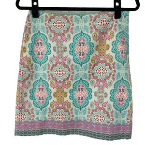 Talbots Turquoise Pink Print Pattern Lined Skirt. Size 2 with measurements in the pictures. Gently used condition with no rips or stains.