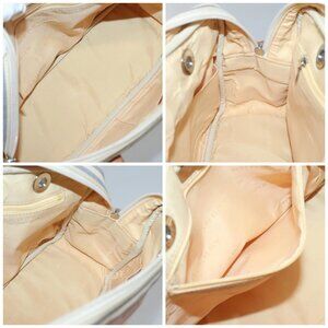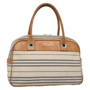 BURBERRY Hand Bag Canvas Leather White Silver Auth bs28984