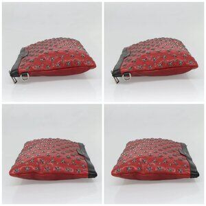 Jimmy Choo Studs Clutch Bag Leather Red Black Auth bs28965