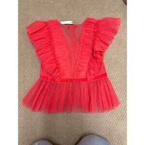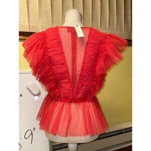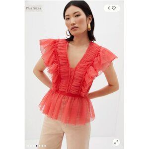 Brand new with tags! MSRP $150.00 Geisha Designs sold by Anthropologie Size small in women’s tops/blouses Measurements lying flat: Underarm to underarm: 17” Length: 22.5” Waist: 15.5” Sleeve: 7.5” Sleeve opening: 9” Hem: 22” “ This tulle blouse is a dreamy pick for springtime soirées and dinner dates. It effortlessly elevates the season’s denim - just add a pair of hoops and heeled sandals. Nylon; nylon, elastane lining Ruffled tulle embellishment V-neck Pullover styling Dry clean Imported Geisha Designs Indian lifestyle brand Geisha Designs converts both the classical and the contemporary into eternal garments that awaken fairytale romance and bliss. The brand employs refined and utilitarian craftsmanship, tailoring silhouettes, flowing drapes, warm colors, and whimsical prints to create textured blouses, skirts, and dresses along with heavily embellished gowns and kaftans.”
