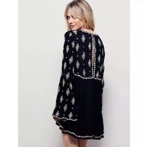 Free People Diamond Embroidered Tunic Bell Sleeve Black Dress XS