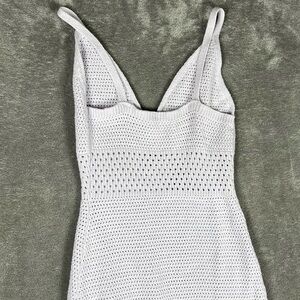 Description- pastel purple/ Ice Lavender. Crochet look all over. Slit. Midi length.