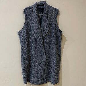 Tahari Wool blend Charcoal Gray black Textured longline Vest pockets Sz 1X