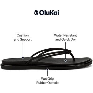 NWT Women’s size 7 OluKai ‘aka Sandals in Black. No signs of wear or damage as shown in photos. Product information also shown in photos.