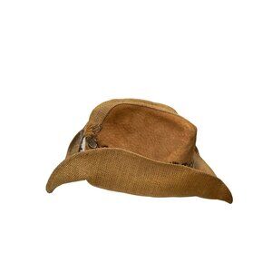 Wolverine Western Wear Womens Brown Feathered Straw Cowboy Hat M SKU 9388