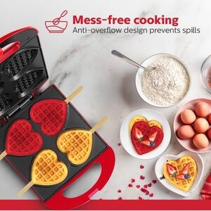 Create delightful heart-shaped waffles with this red waffle maker. Perfect for breakfast or special occasions.
