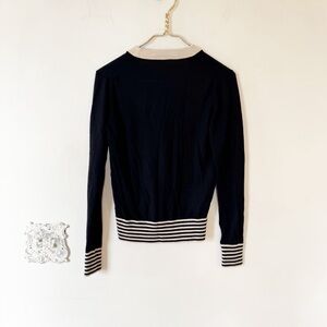 Bouchra Jarrar Paris Black Wool Cardigan Sweater Camel Stripe