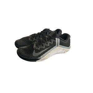 Nike Men’s Metcon 6 Training Shoes in Black Grey Volt. Model number CK9388 030. Designed for high intensity training with breathable mesh, stable heel support, and durable sidewalls. Good pre owned condition with normal wear. Size Men’s 9.