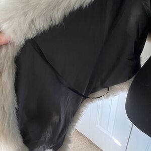Stay warm and stylish with this absolutely Beautiful Sheran One Size Fits All Black And Grey Faux Fur Shawl Cover Up Coat This elegant coat features a luxurious grey faux fur trim, perfect for adding a touch of sophistication to your winter wardrobe has optional straps for arms comes from a smoke free home