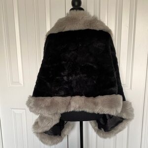 Beautiful Sheran One Size Fits All Black And Grey Faux Fur Shawl Cover Up Coat