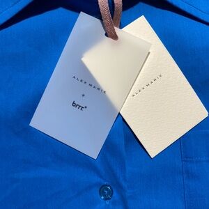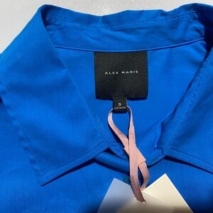 NEW Size S Alex Marie Brrr Iris Cot Poplin Moist Wick Button Frt Blouse Blue $99