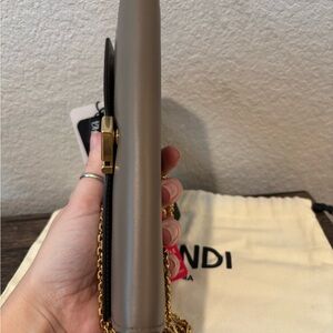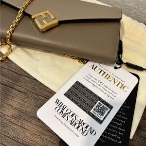 Authentic Fendi Brown Beige Crossbody Wallet On Chain Shoulder Bag. In NEW condition. Purchased this second hand and it has never been used. Absolutely gorgeous piece that goes with any outfit! Comes with original certificate of authenticity from Fendi and a second certificate of authenticity. Would make an amazing gift!💖
