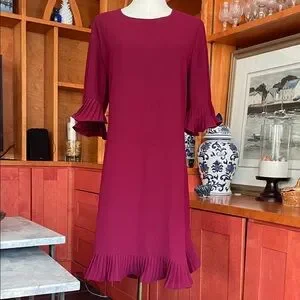Alfani Berry Long Sleeve Dress with Pleated Accents Size 12 EUC