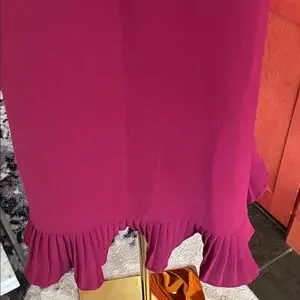 Chic berry dress with pleated sleeves and hem. Perfect for stylish outings.