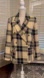 Elevate your style with this chic plaid double-breasted blazer. Featuring a classic black and cream pattern, it's perfect for any occasion.