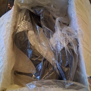 Ann Marino Cut Out Black Suede & Cobra Cutout Stiletto Heels Size 7.5