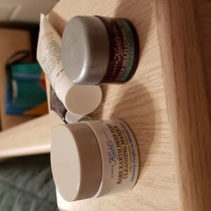 Kiehl's set includes a cleansing masque, foaming face wash, and multi-corrective cream. Elegant white and gray packaging.