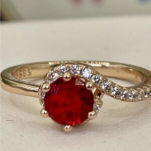 ZALES 1.2ct 14k Solid Rose Gold, Red & White Sapphire ring.