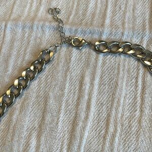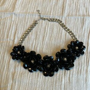 Make a statement with this vintage black floral necklace. Black flowers and a silver chain. The necklace is 22” long.