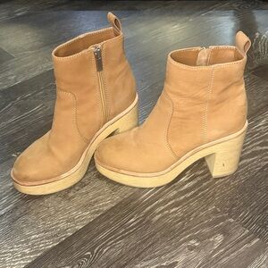 Dolce Vita Cecile clog ankle bootie with a heel in tan size 5.5. Some minor flaws shown in pictures.