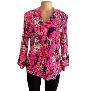 Lilly Pulitzer Sarasota Tunic Long Sleeve Vneck Blouse A Jungle in Here Print in size Small.
