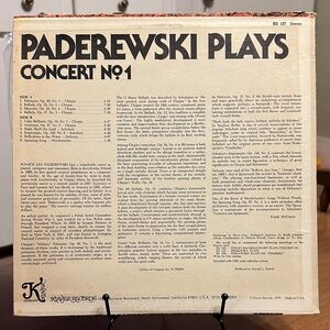 Experience the timeless music of Paderewski with this vibrant vinyl record. Featuring striking red and orange artwork, this piece is a must-have for any collector.
