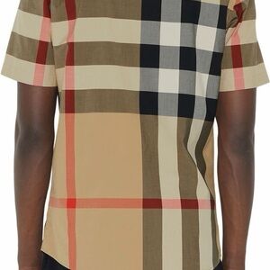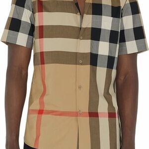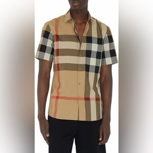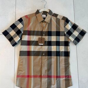 BURBERRY Summerton Archive Short Sleeve Check Cotton Poplin Button Shirt medium.