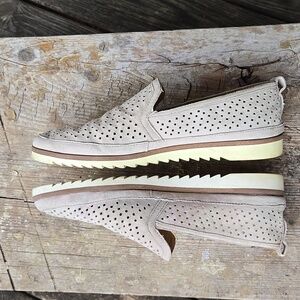 Franco Sarto Perforated Beige Ladies Loafers. Size 6M. Good Condition.