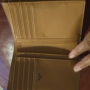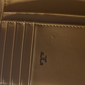 Chic Tory Burch wallet in bold red. Features signature logo detail. Perfect for style and utility. Please look at photos inside corner has small wear. The logo has a little fade.