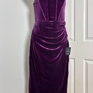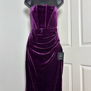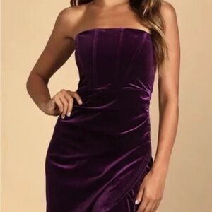 Elegant strapless dress by Lulu's. Luxurious purple velvet fabric. Ideal for special occasions.
