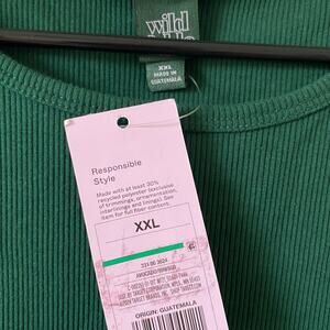 NEW WILD FABLE Ribbed Short Sleeve T Shirt Green Size XXL Fitted Stretch Basic